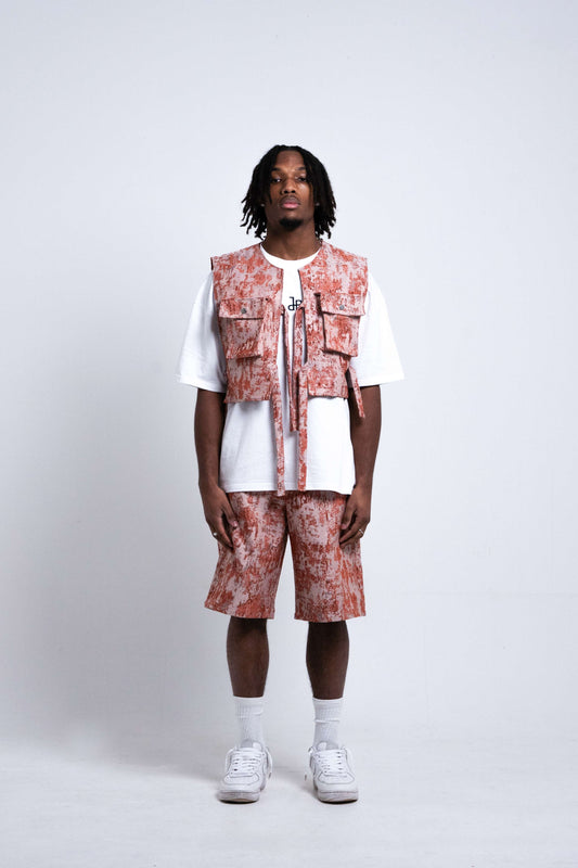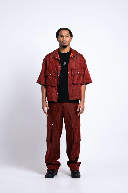 Chemise coupe crop avec poches latérales 3D orange & noir